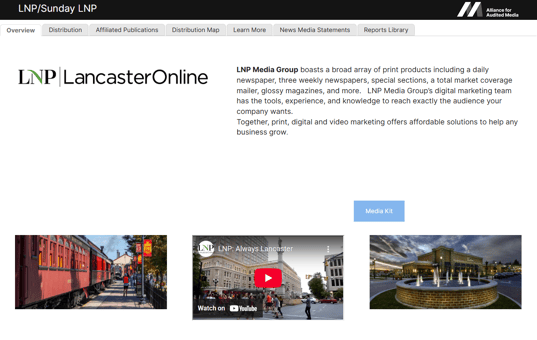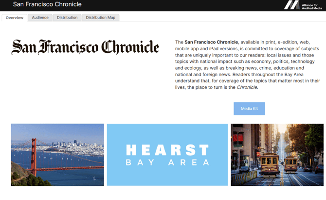 The Overview section is like the “home page” of your AAM profile. Not only is it the first thing media buyers see when they visit your profile, but it also provides the most opportunities to promote your media brand. The San Francisco Chronicle's Overview section below is a great example of how rich informational text and attractive images create a compelling profile.